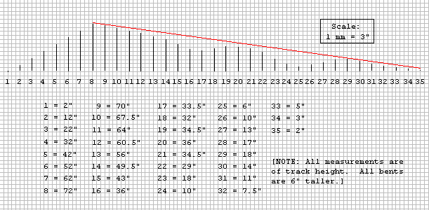 I pulled out of the dumpster two of the bent sections I'd thrown away. Within an hour I had modified them to replace bents 25 and 26. I was very glad that I put the structure together with multi-purpose screws; that made quick modifications like this possible. In short order, I was ready to attempt another ride.